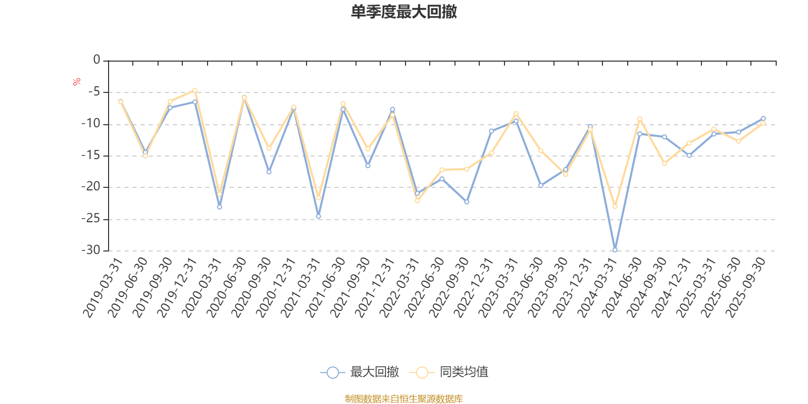 截至10月24日,基金近三年最大回撤为53.51%,同类可比基金排名144/159。单季度最大回撤出现在2024年一季度,为29.88%。