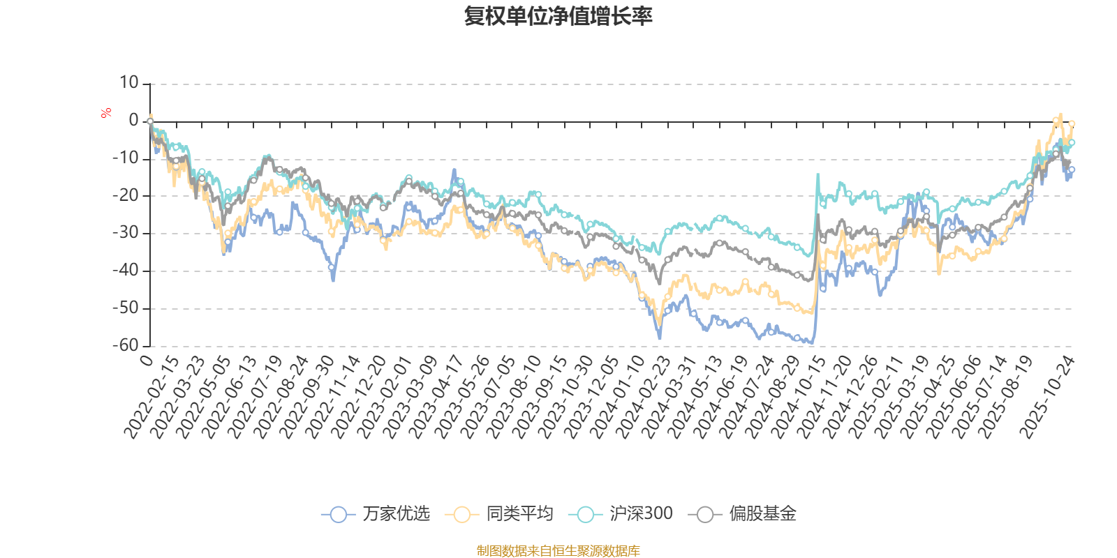 截至10月24日,万家优选近三个月复权单位净值增长率为20.52%,位于同类可比基金179/229;近半年复权单位净值增长率为19.77%,位于同类可比基金216/229;近一年复权单位净值增长率为48.86%,位于同类可比基金125/213;近三年复权单位净值增长率为30.48%,位于同类可比基金102/158。