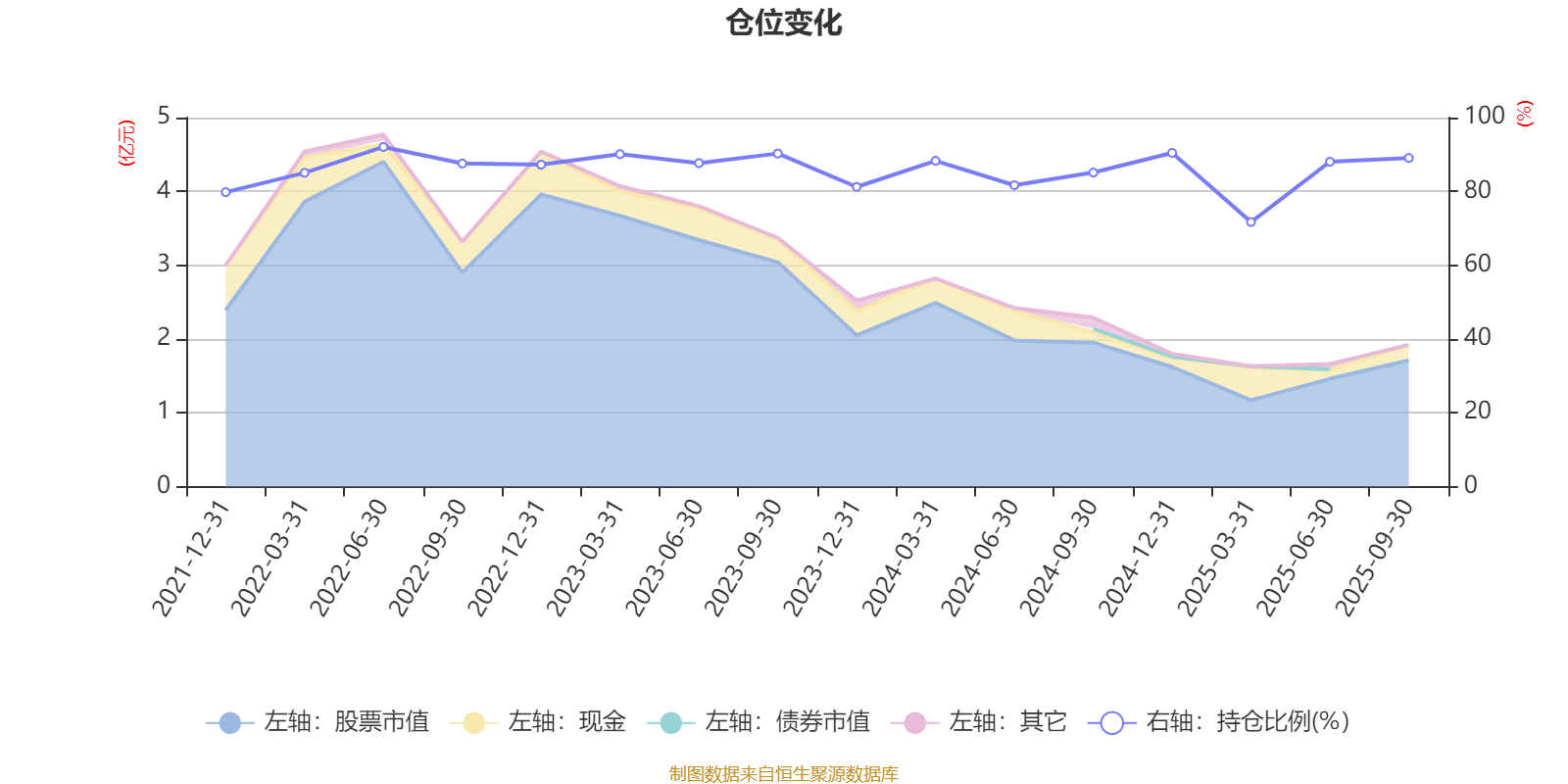 据定期报告数据统计,近三年平均股票仓位为85.9%,同类平均为85.47%。2022年上半年末基金达到92.04%的最高仓位,2025年一季度末最低,为71.7%。