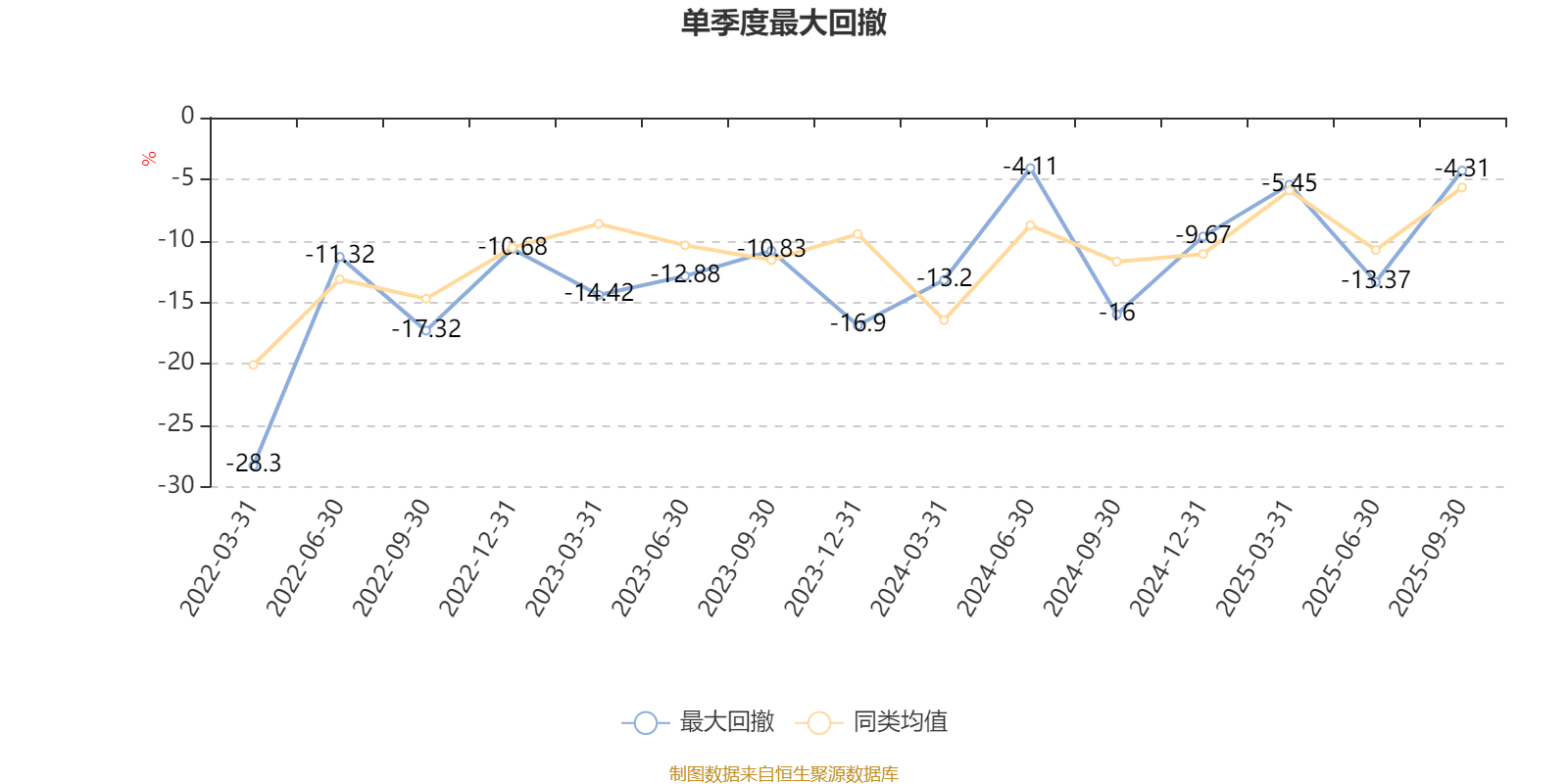 截至10月24日,基金近三年最大回撤为41.02%,同类可比基金排名376/519。单季度最大回撤出现在2022年一季度,为28.3%。