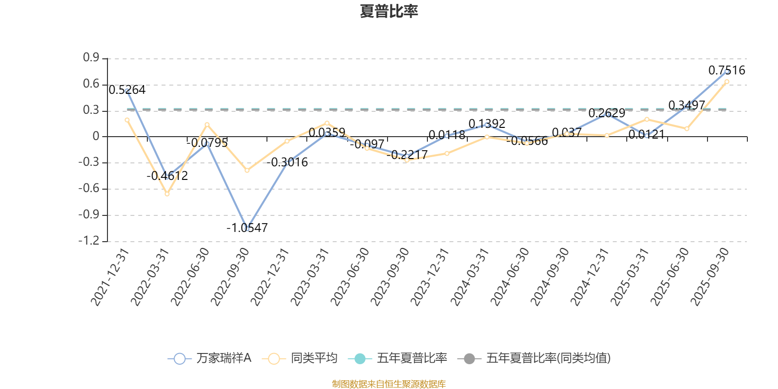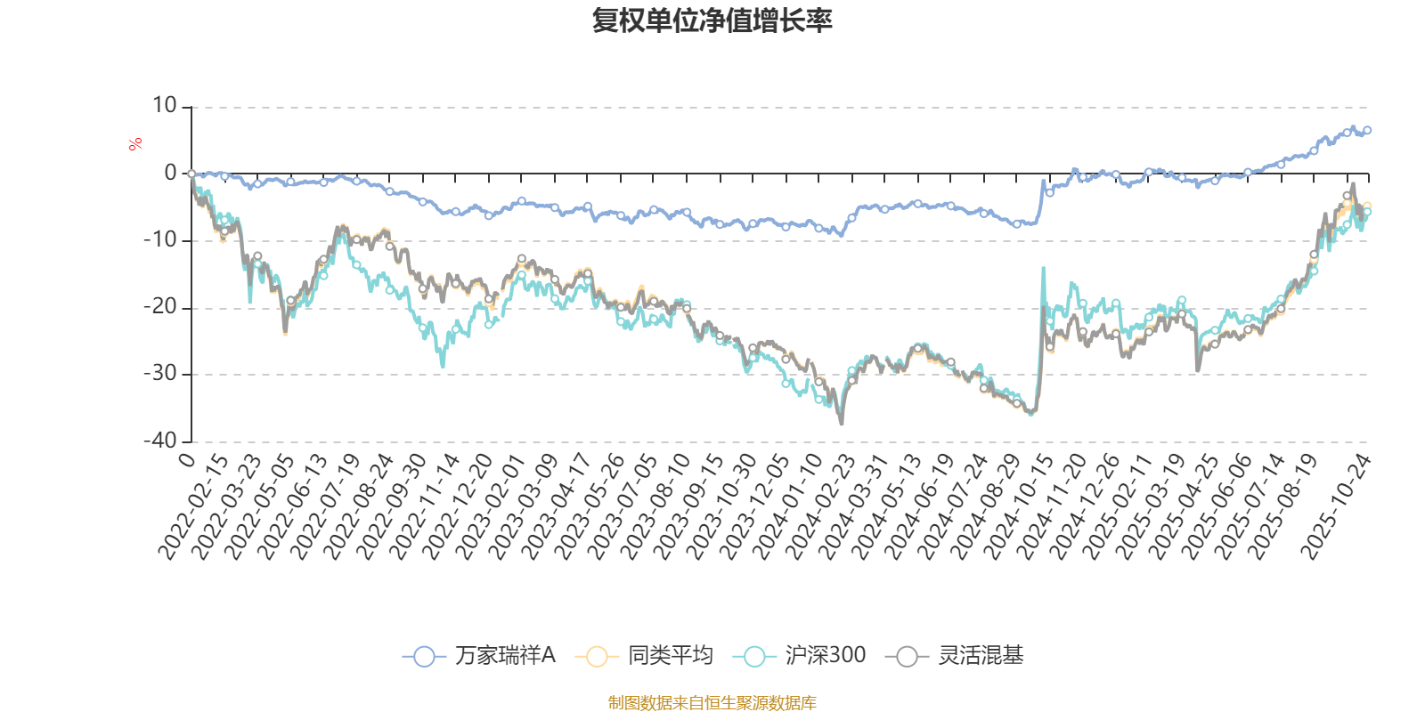 截至10月24日,万家瑞祥A近三个月复权单位净值增长率为4.20%,位于同类可比基金950/1287;近半年复权单位净值增长率为7.76%,位于同类可比基金1062/1287;近一年复权单位净值增长率为8.73%,位于同类可比基金994/1287;近三年复权单位净值增长率为12.17%,位于同类可比基金684/1286。