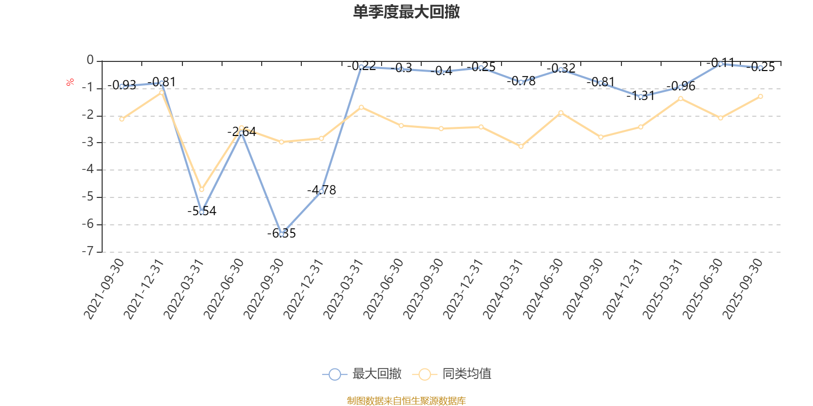 截至10月24日,基金近三年最大回撤为4.78%,同类可比基金排名183/552。单季度最大回撤出现在2022年三季度,为6.35%。