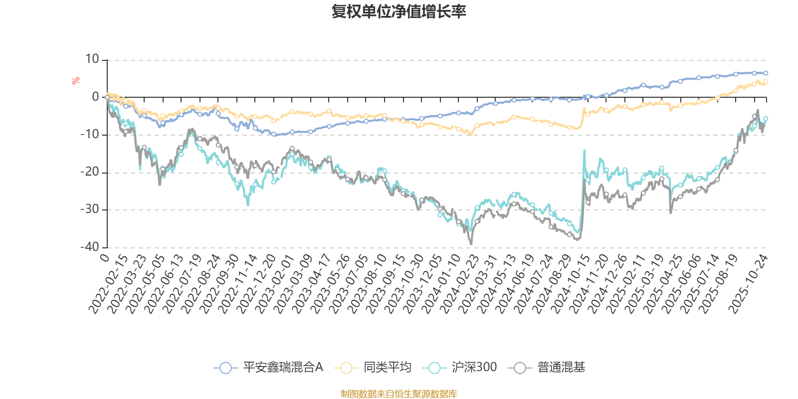 截至10月24日,平安鑫瑞混合A近三个月复权单位净值增长率为0.79%,位于同类可比基金494/629;近半年复权单位净值增长率为2.11%,位于同类可比基金555/629;近一年复权单位净值增长率为6.35%,位于同类可比基金367/623;近三年复权单位净值增长率为15.32%,位于同类可比基金144/556。