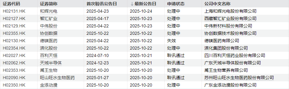 德镁医药有限公司的申请失效。四川百利天恒药业股份有限公司、广东天域半导体股份有限公司、苏州旺山旺水生物医药股份有限公司等3家的聆讯通过。