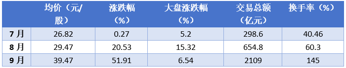 大笔资金则更早就已入局。整个8月,三花智控成交金额达到654.8亿元,较7月增长64%;换手率为60.3%。9月的资金交易更为活跃,成交金额达到2109亿元,换手率为145%。