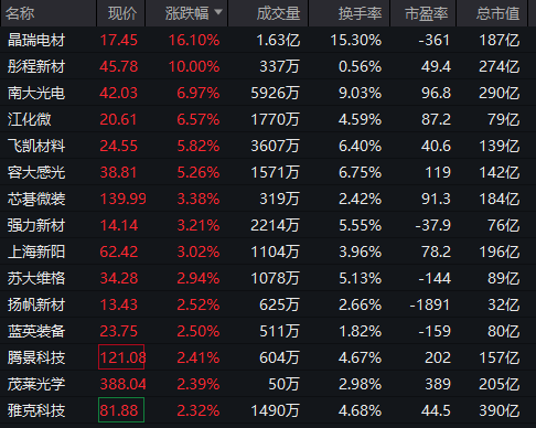 【导读】光刻胶概念股大幅高开,精细化工板块多股涨停;中际旭创近半年累计大涨超600%