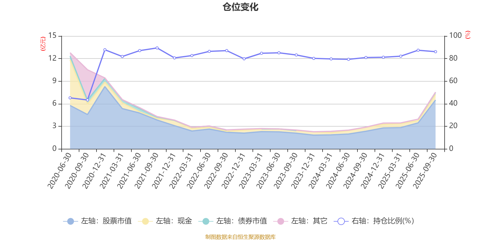 据定期报告数据统计,近三年平均股票仓位为82.5%,同类平均为88.21%。2021年三季度末基金达到89.42%的最高仓位,2020年三季度末最低,为43.39%。