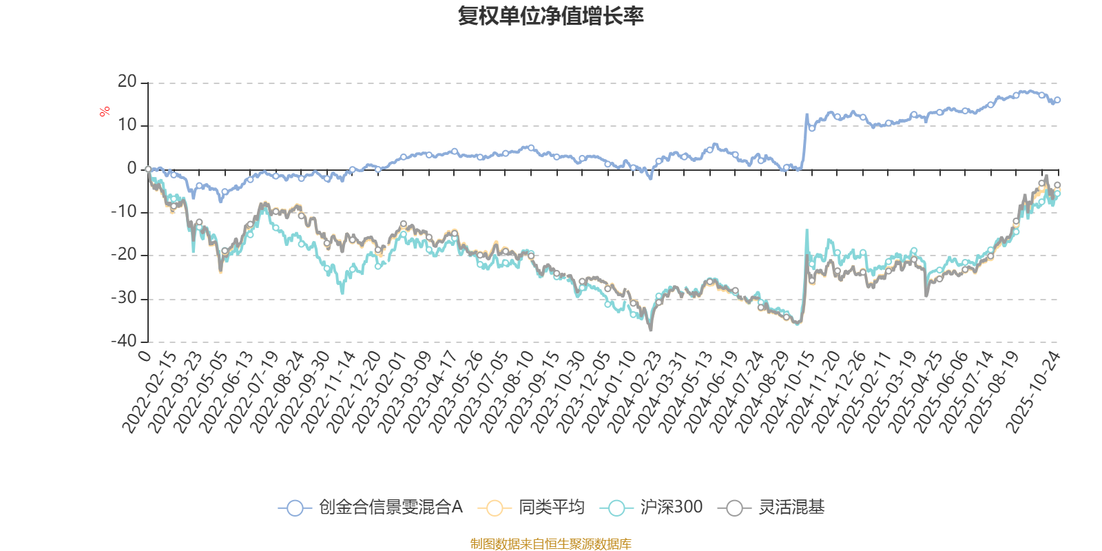 截至10月24日,创金合信景雯混合A近三个月复权单位净值增长率为-0.78%,位于同类可比基金1223/1287;近半年复权单位净值增长率为2.73%,位于同类可比基金1210/1287;近一年复权单位净值增长率为4.72%,位于同类可比基金1136/1287;近三年复权单位净值增长率为18.42%,位于同类可比基金525/1286。