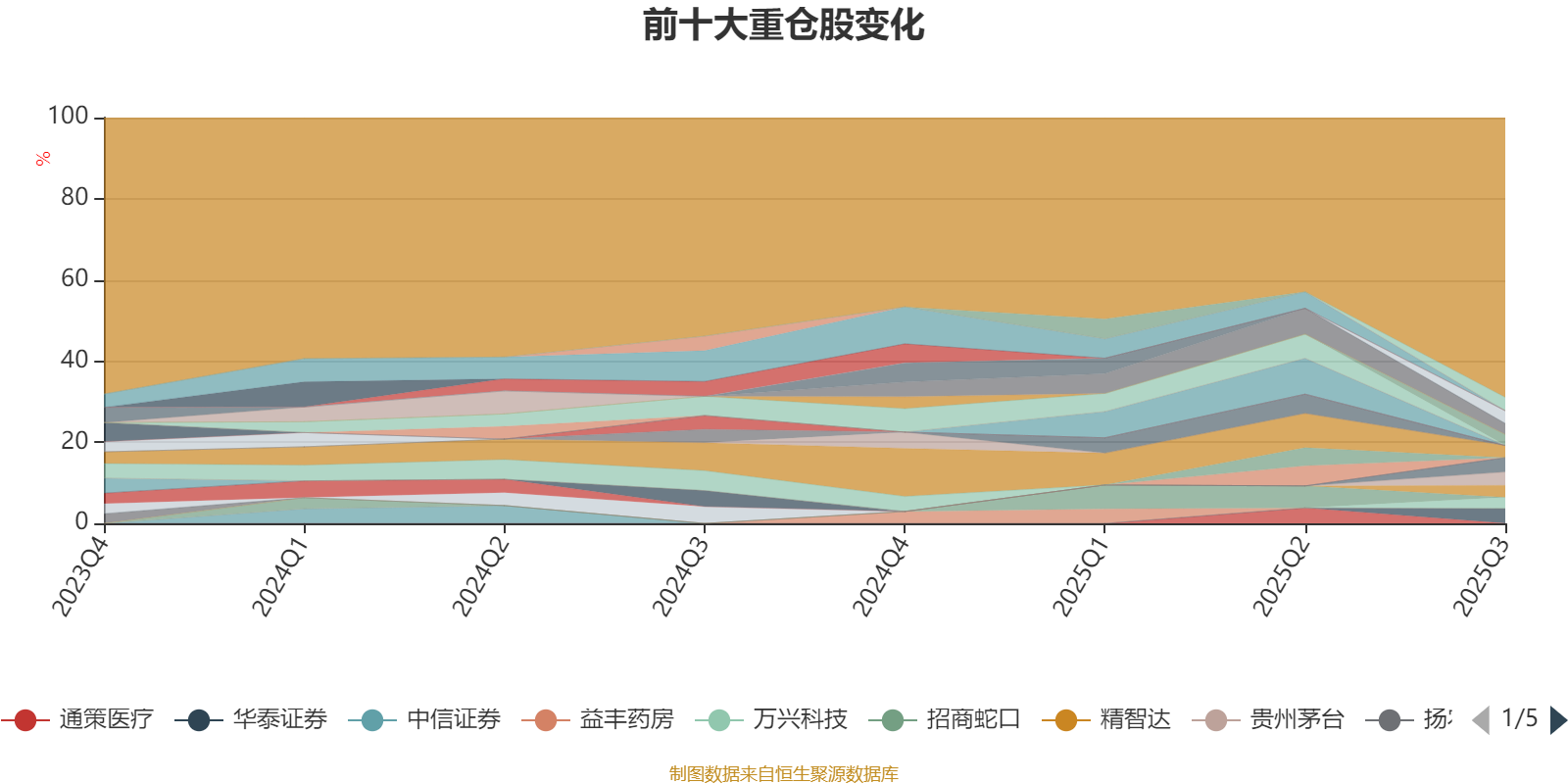 截至2025年三季度末,基金十大重仓股分别是华泰证券、广发证券、贵州茅台、汉威科技、拓荆科技、首旅酒店、精智达、万兴科技、光库科技、比音勒芬。