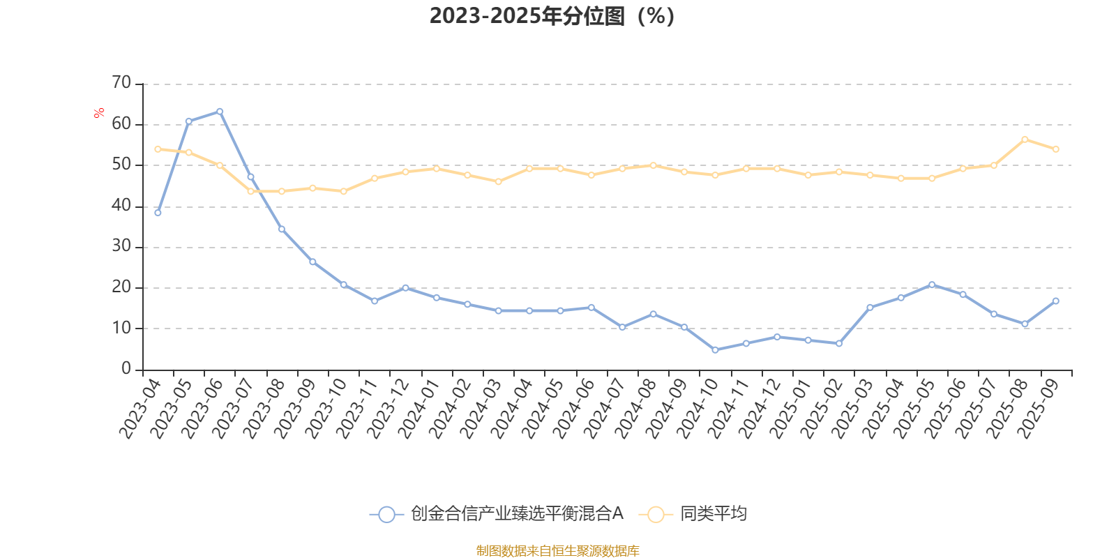 通过所选区间该基金净值增长率分位图,可以观察该基金与同类基金业绩比较情况。图为坐标原点到区间内某时点的净值增长率在同类基金中的分位数。