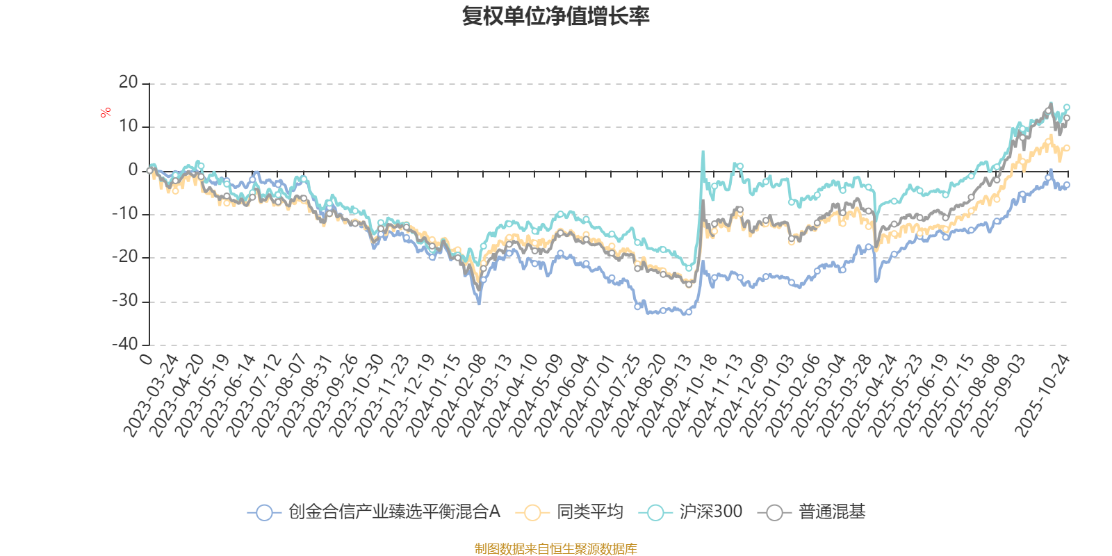 截至10月24日,创金合信产业臻选平衡混合A近三个月复权单位净值增长率为10.26%,位于同类可比基金70/134;近半年复权单位净值增长率为19.68%,位于同类可比基金67/134;近一年复权单位净值增长率为27.59%,位于同类可比基金35/130。