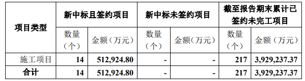建筑业经营方面,公司第三季度新中标且签约项目14个,合计金额51.29亿元;截至报告期末累计已签约未完工项目217个,合计金额392.92亿元。