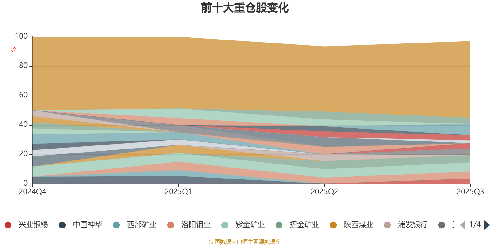 截至2025年三季度末,基金十大重仓股分别是华友钴业、紫金矿业、招金矿业、洛阳钼业、天赐材料、中国宏桥、湖南裕能、山东黄金、兴业银锡、三花智控。