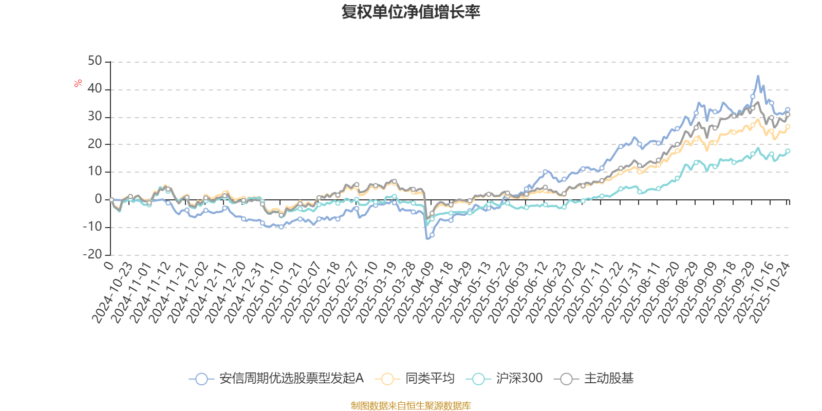 截至10月24日,安信周期优选股票型发起A近三个月复权单位净值增长率为10.17%,位于同类可比基金68/121;近半年复权单位净值增长率为40.19%,位于同类可比基金26/121;近一年复权单位净值增长率为32.89%,位于同类可比基金39/115。