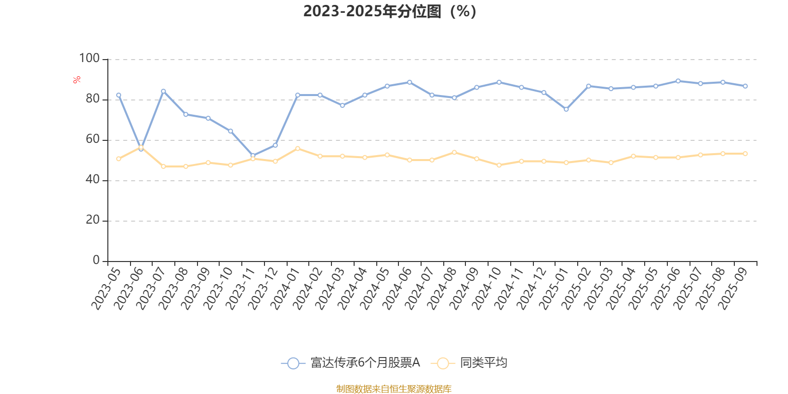 通过所选区间该基金净值增长率分位图,可以观察该基金与同类基金业绩比较情况。图为坐标原点到区间内某时点的净值增长率在同类基金中的分位数。