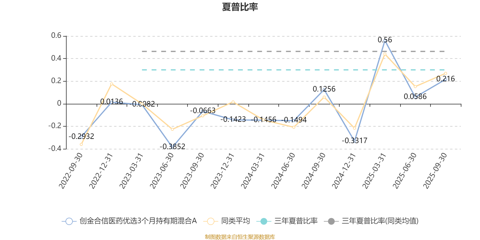 截至9月30日,基金近三年夏普比率为0.3003,位于同类可比基金54/75。