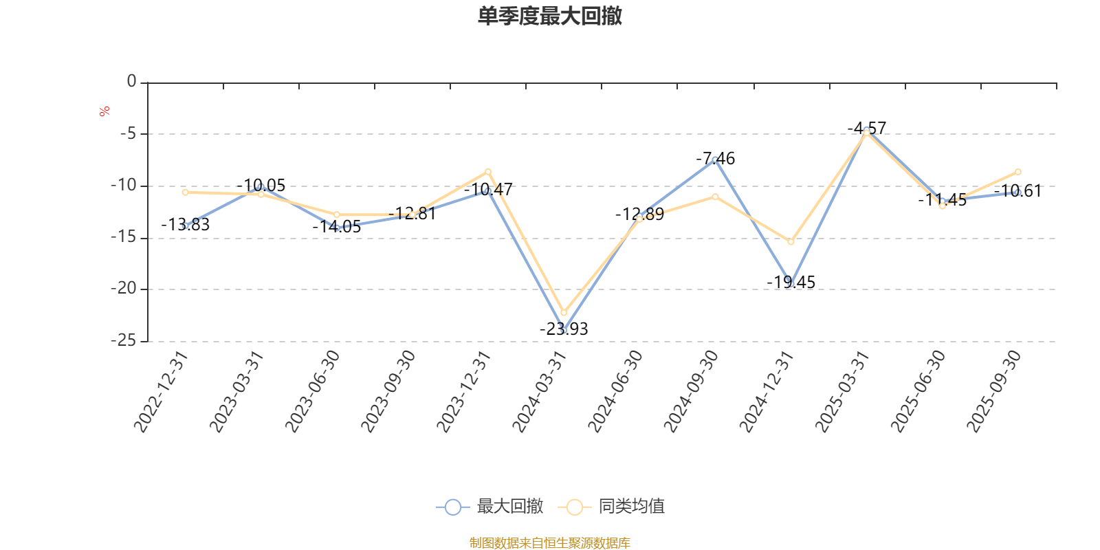 截至10月24日,基金近三年最大回撤为42.42%,同类可比基金排名49/75。单季度最大回撤出现在2024年一季度,为23.93%。