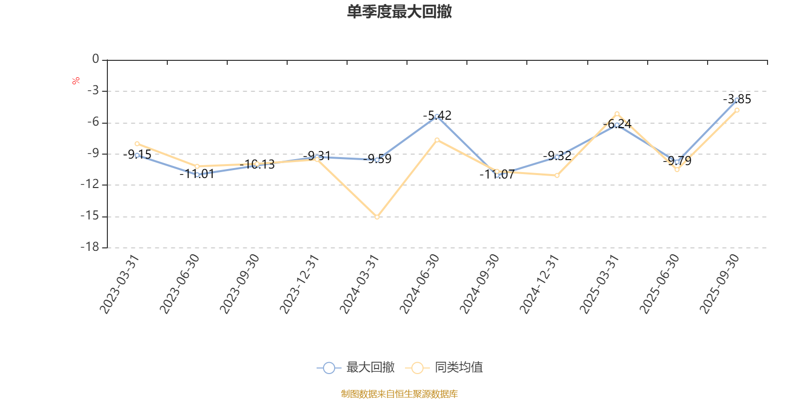 截至10月24日,基金近三年最大回撤为25.59%,同类可比基金排名17/56。单季度最大回撤出现在2024年三季度,为11.07%。