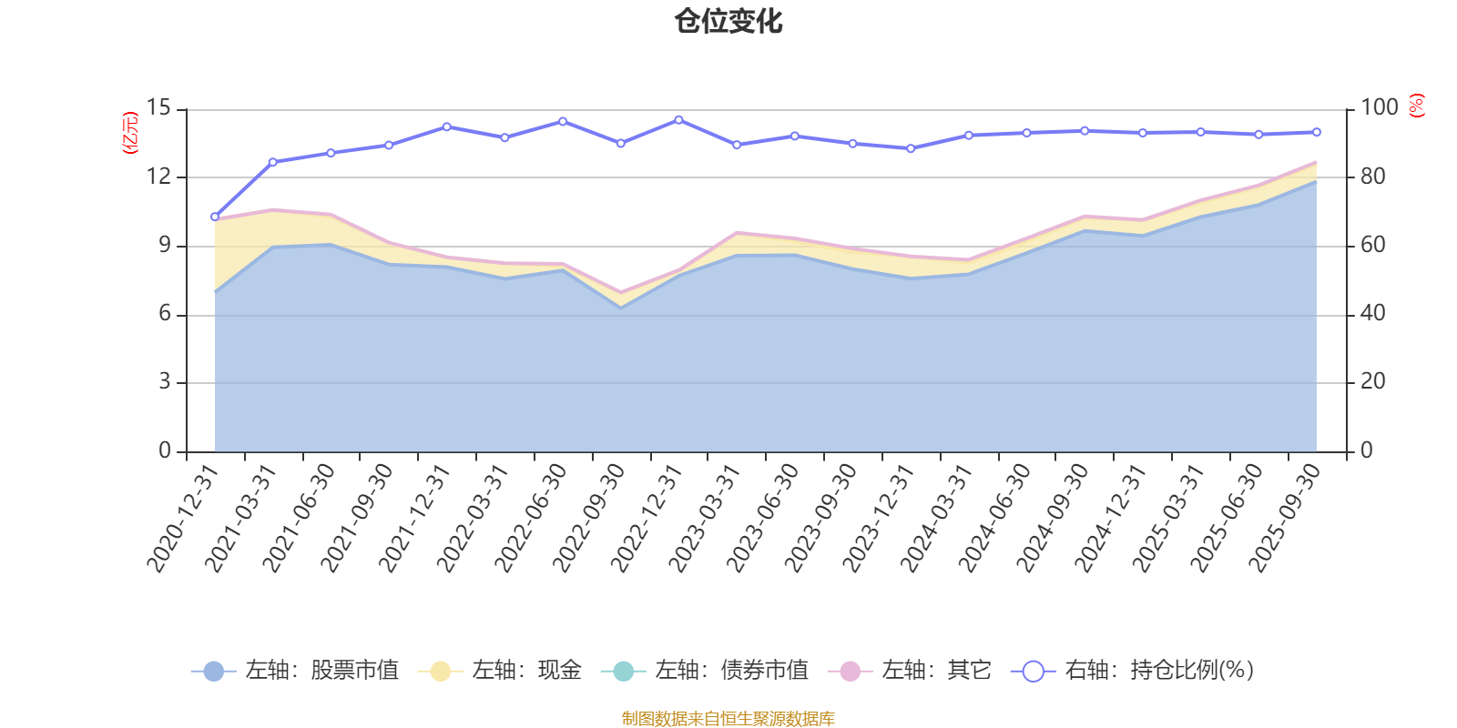 据定期报告数据统计,近三年平均股票仓位为92.39%,同类平均为88.5%。2022年末基金达到96.88%的最高仓位,2020年末最低,为68.62%。