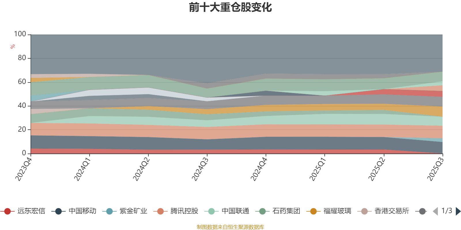 该基金持股集中度较高。截至2025年三季度末,基金十大重仓股分别是腾讯控股、中国移动、福耀玻璃、中国电信、招商银行、中国联通、信达生物、阿里巴巴-W、华润万象生活、紫金矿业。