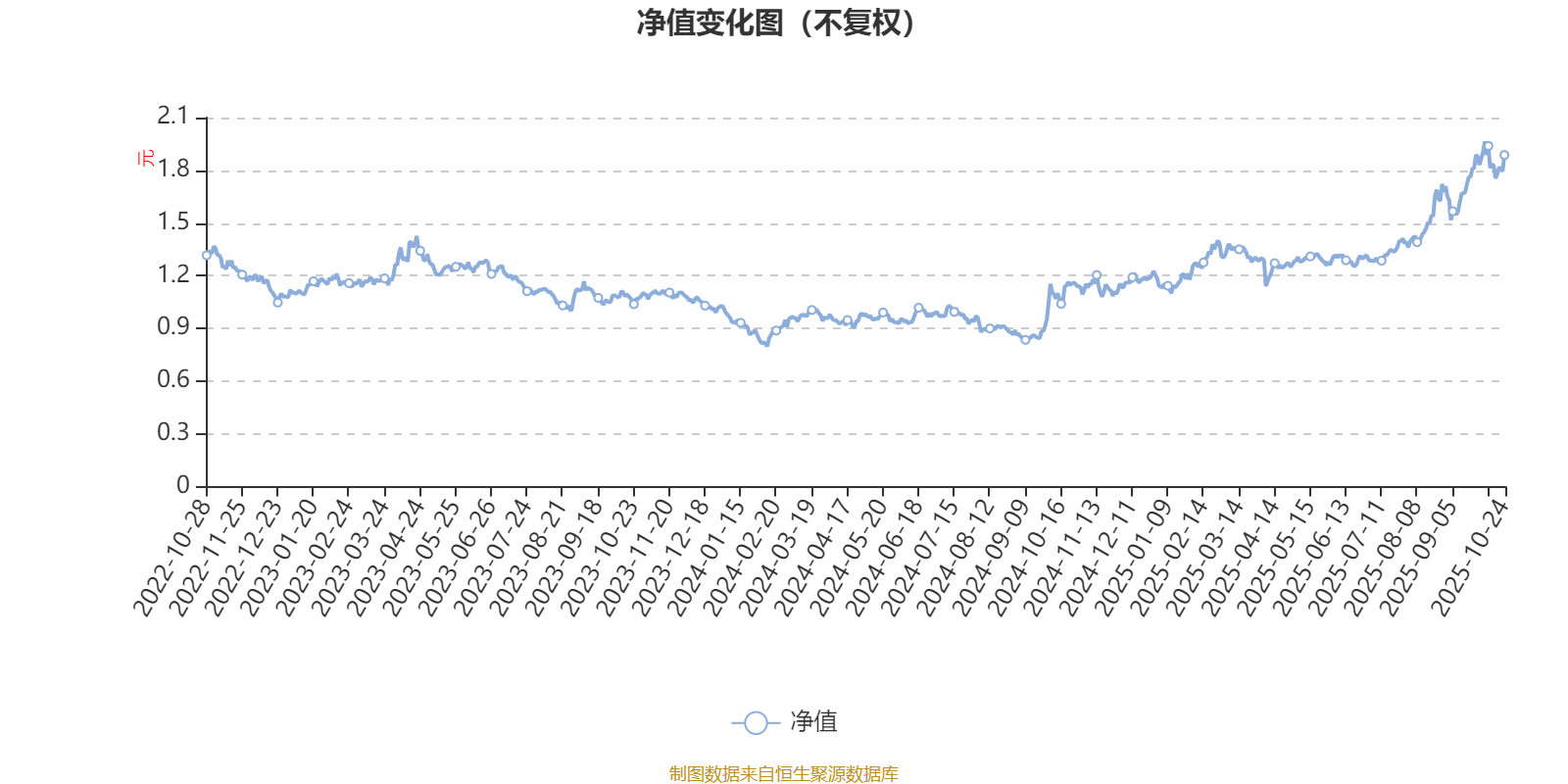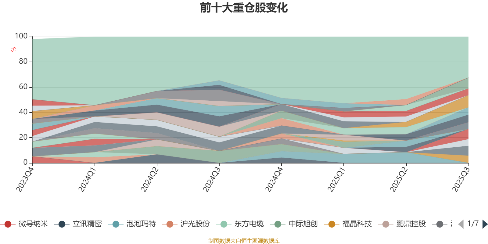 截至2025年三季度末,基金十大重仓股分别是中芯国际、华虹半导体、北方华创、中微公司、中科飞测、芯源微、福晶科技、阿里巴巴-W、腾讯控股、寒武纪。