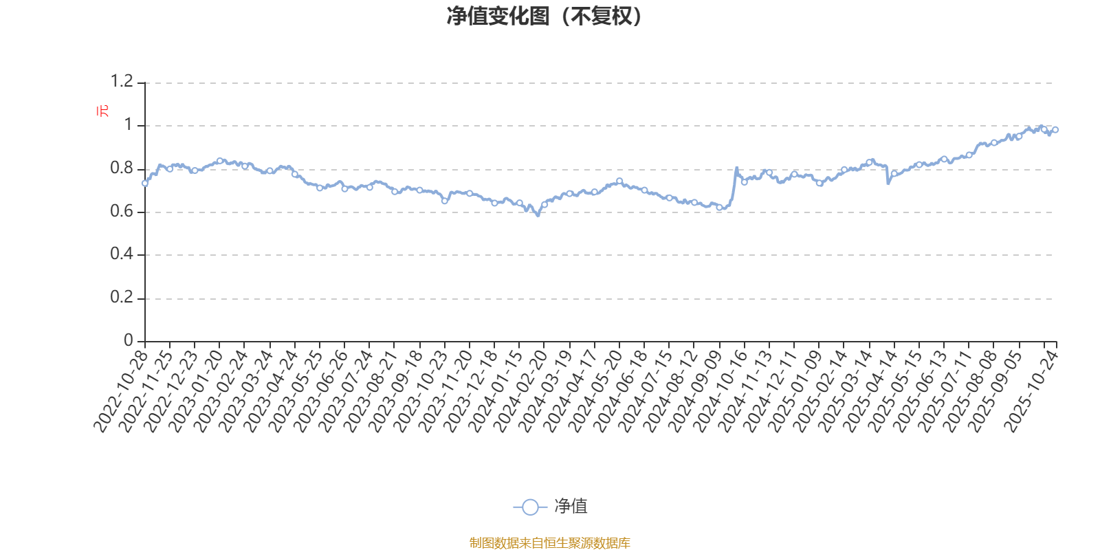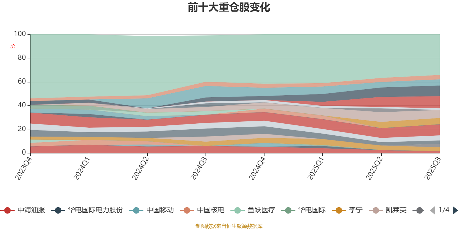 且持股标的较为稳定。截至2025年三季度末,基金重仓股分别是阿里巴巴-W、宁德时代、金蝶国际、中海油田服务、马应龙、中通快递-W、华能国际、青岛啤酒股份、李宁、海大集团、华能国际电力股份、中海油服。