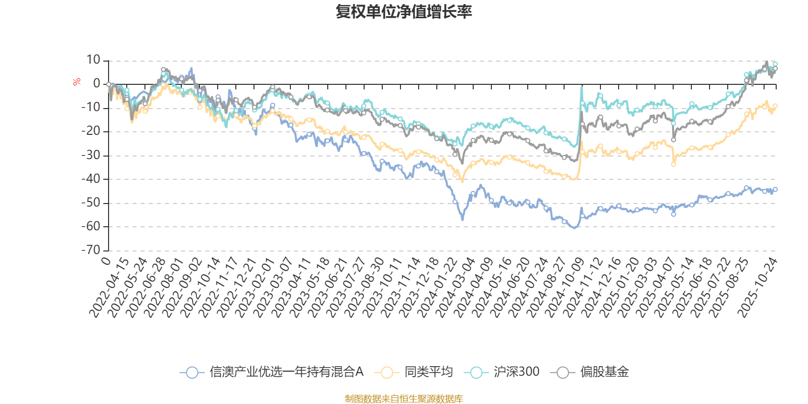 截至10月24日,信澳产业优选一年持有混合A近三个月复权单位净值增长率为3.85%,位于同类可比基金572/689;近半年复权单位净值增长率为13.37%,位于同类可比基金572/688;近一年复权单位净值增长率为24.91%,位于同类可比基金352/653;近三年复权单位净值增长率为-38.95%,位于同类可比基金358/363。