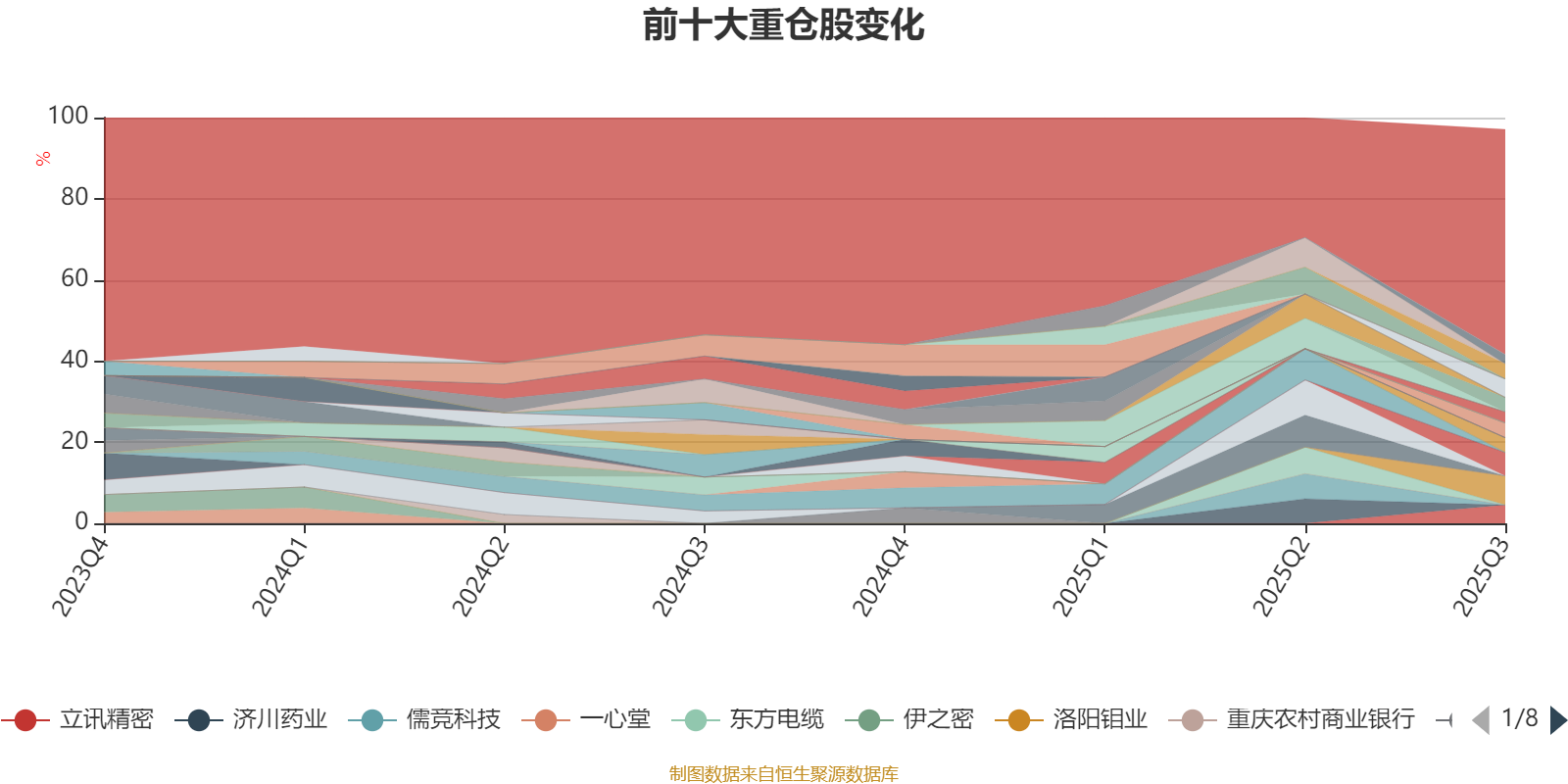 截至2025年三季度末,基金十大重仓股分别是洛阳钼业、紫金矿业、株冶集团、立讯精密、华友钴业、招金矿业、江西铜业股份、东方钽业、宁波华翔、松原安全。