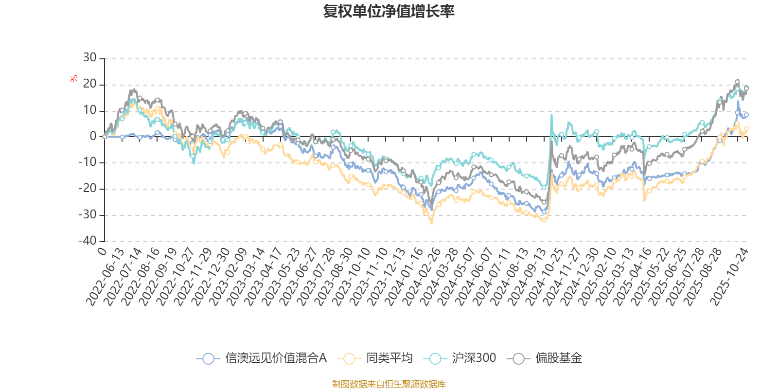 截至10月24日,信澳远见价值混合A近三个月复权单位净值增长率为19.55%,位于同类可比基金190/689;近半年复权单位净值增长率为27.91%,位于同类可比基金313/688;近一年复权单位净值增长率为28.38%,位于同类可比基金296/653;近三年复权单位净值增长率为12.00%,位于同类可比基金178/363。