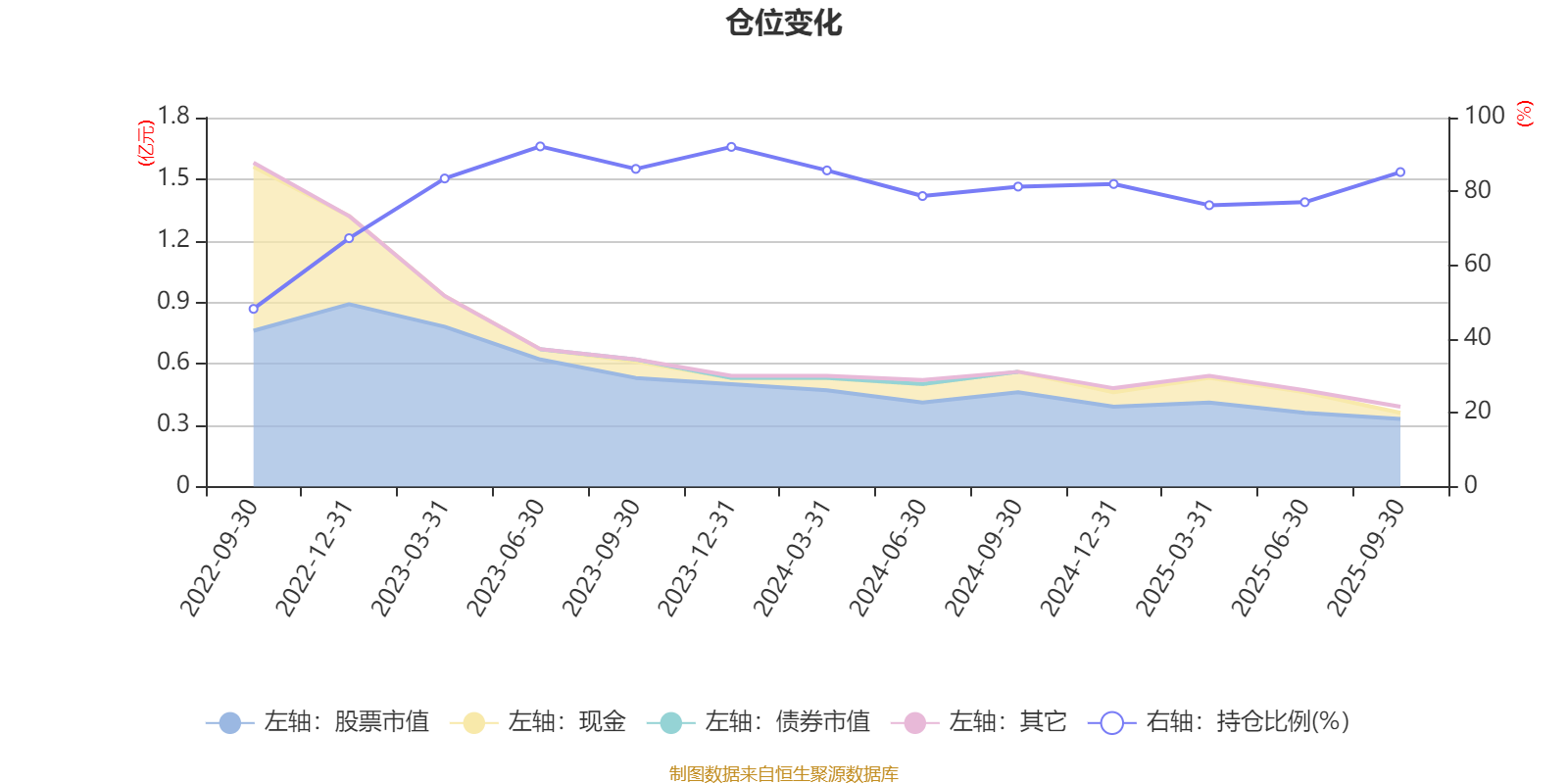 据定期报告数据统计,近三年平均股票仓位为82.29%,同类平均为83.5%。2023年上半年末基金达到92.19%的最高仓位,2022年三季度末最低,为48.16%。