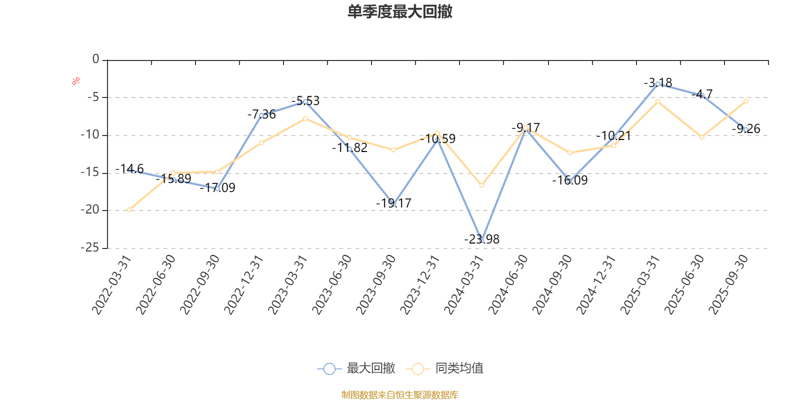截至10月24日,基金近三年最大回撤为44.93%,同类可比基金排名75/85。单季度最大回撤出现在2024年一季度,为23.98%。