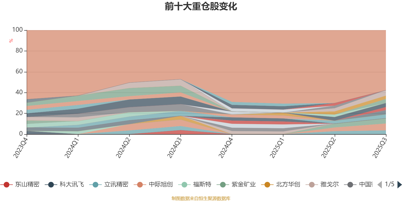 截至2025年三季度末,基金十大重仓股分别是中际旭创、新易盛、紫金矿业、中芯国际、沪电股份、工业富联、寒武纪、立讯精密、天孚通信、英维克。