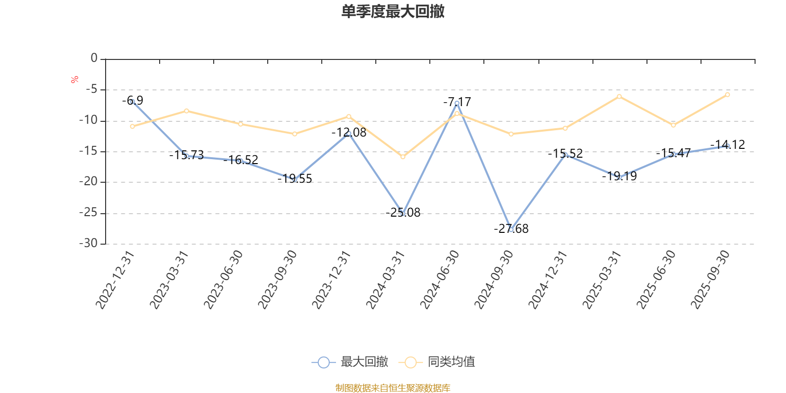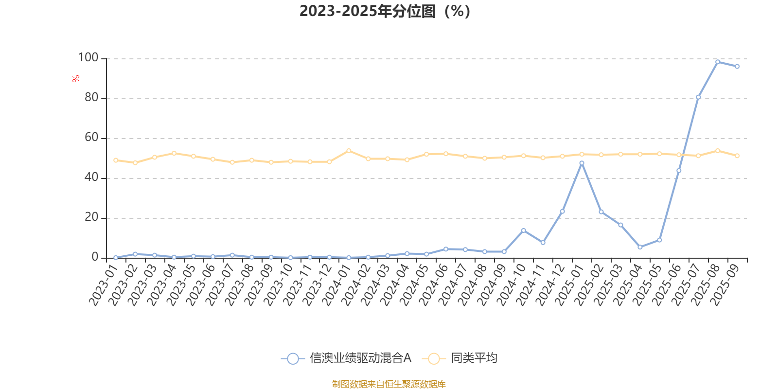 通过所选区间该基金净值增长率分位图,可以观察该基金与同类基金业绩比较情况。图为坐标原点到区间内某时点的净值增长率在同类基金中的分位数。