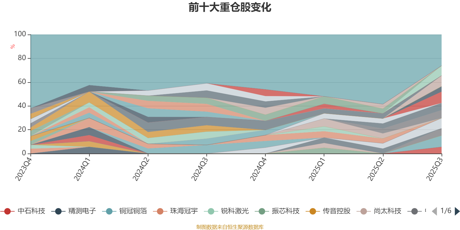 截至2025年三季度末,基金十大重仓股分别是铜冠铜箔、寒武纪、中芯国际、华工科技、南亚新材、上海复旦、中材科技、巨子生物、中石科技、蔚蓝锂芯。