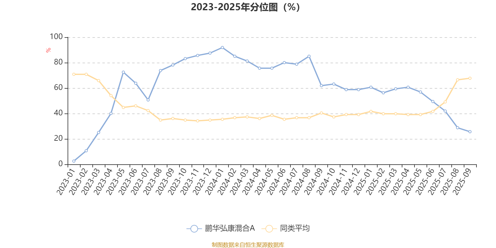 通过所选区间该基金净值增长率分位图,可以观察该基金与同类基金业绩比较情况。图为坐标原点到区间内某时点的净值增长率在同类基金中的分位数。