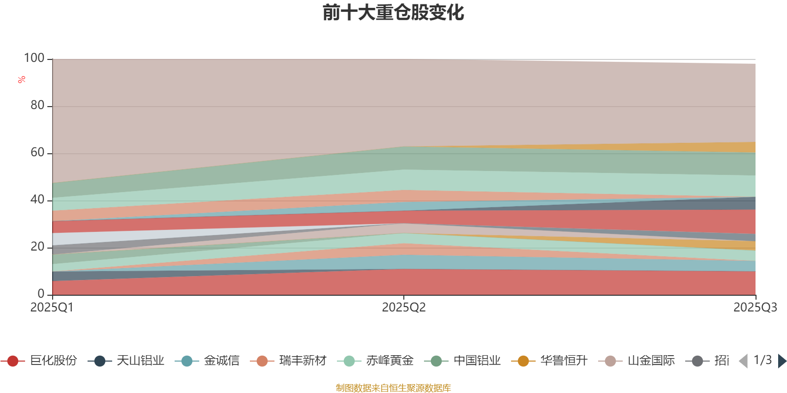截至2025年三季度末,基金十大重仓股分别是洛阳钼业、巨化股份、紫金矿业、三美股份、华峰化学、鲁西化工、金诚信、赤峰黄金、华鲁恒升、山东黄金。
