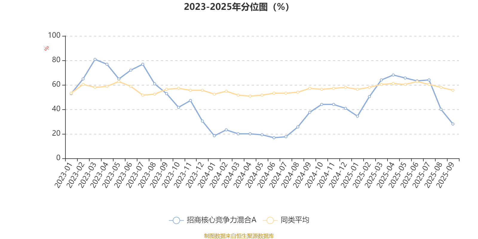 通过所选区间该基金净值增长率分位图,可以观察该基金与同类基金业绩比较情况。图为坐标原点到区间内某时点的净值增长率在同类基金中的分位数。