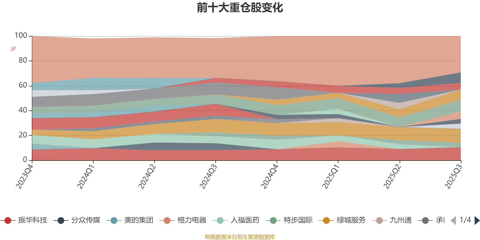 该基金持股集中度较高。截至2025年三季度末,基金十大重仓股分别是绿城服务、振华科技、中国民航信息网络、绿城中国、广信股份、海尔智家、蒙牛乳业、明源云、特步国际、北京首都机场股份。