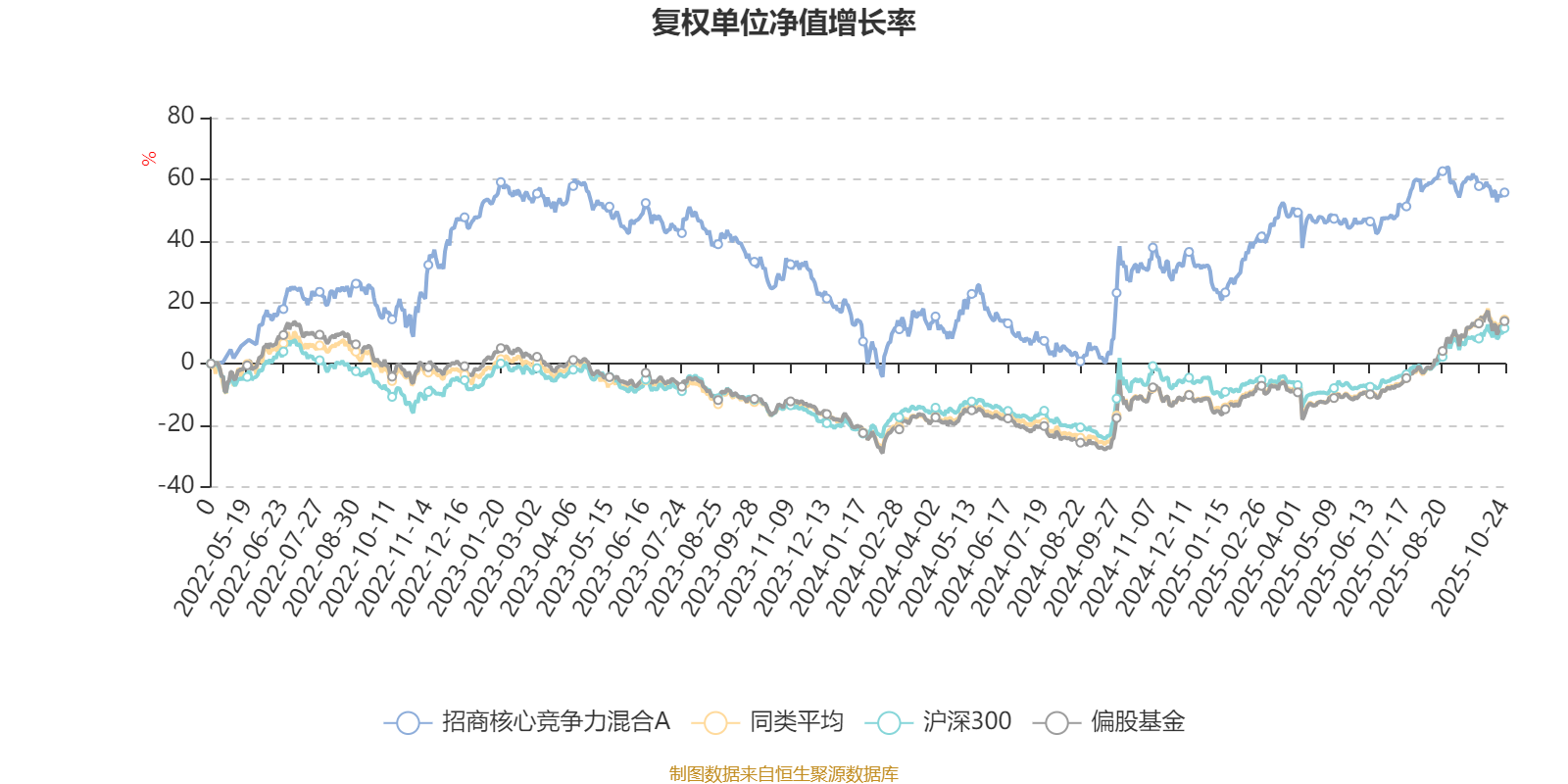 截至10月24日,招商核心竞争力混合A近三个月复权单位净值增长率为-2.23%,位于同类可比基金127/130;近半年复权单位净值增长率为5.50%,位于同类可比基金126/130;近一年复权单位净值增长率为20.14%,位于同类可比基金86/130;近三年复权单位净值增长率为39.13%,位于同类可比基金34/124。