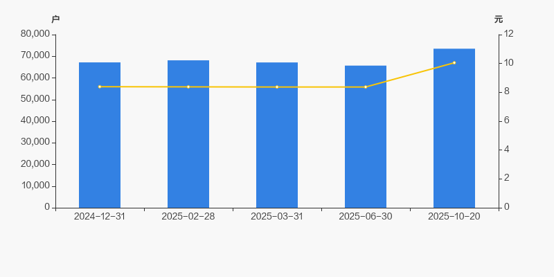 截至2025年10月20日,公司最新总股本为16.73亿股,其中流通股本为12.22亿股。户均持有流通股数量由上期的1.86万股下降至1.66万股,户均流通市值16.71万元。