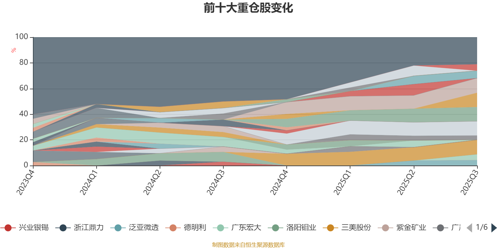 截至2025年三季度末,基金十大重仓股分别是巨化股份、三美股份、昊华科技、东岳集团、永和股份、嘉澳环保、新宙邦、广东宏大、泛亚微透、山高环能。