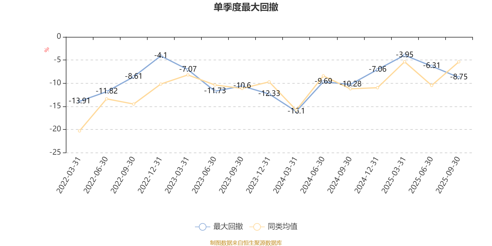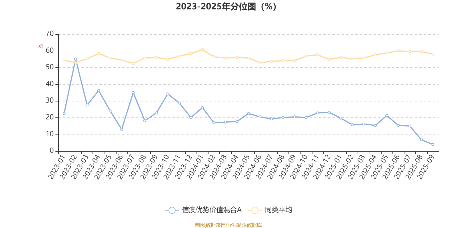 通过所选区间该基金净值增长率分位图,可以观察该基金与同类基金业绩比较情况。图为坐标原点到区间内某时点的净值增长率在同类基金中的分位数。