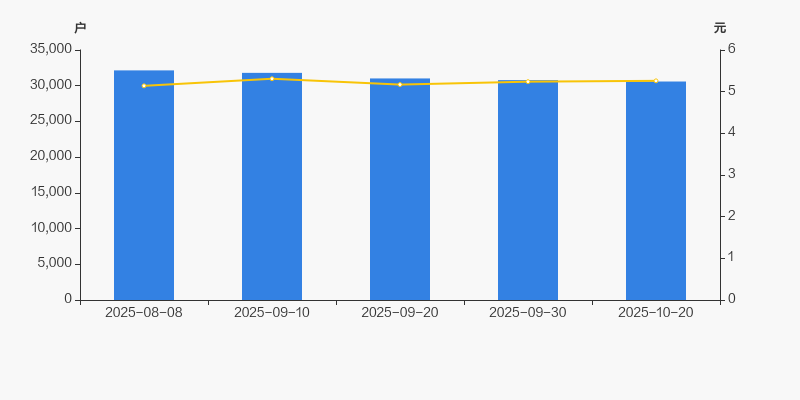 截至2025年10月20日,公司最新总股本为7.88亿股,其中流通股本为5.01亿股。户均持有流通股数量由上期的1.63万股上升至1.64万股,户均流通市值8.76万元。