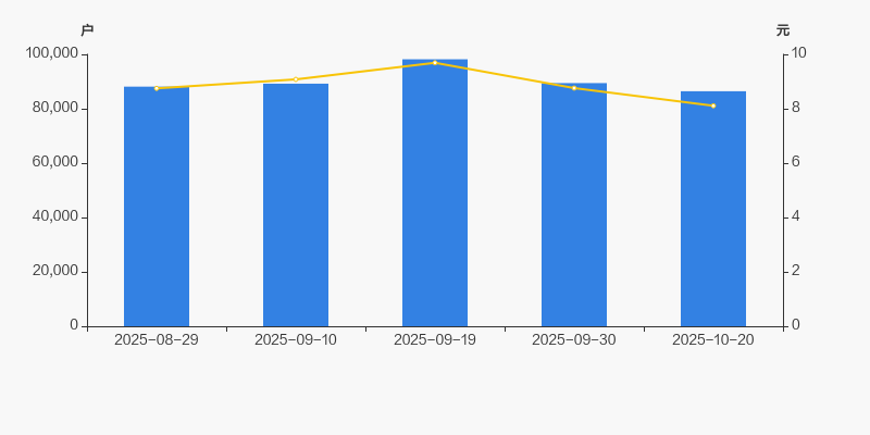 2025年8月29日至今,公司股东户数有所下降,区间跌幅为1.92%。2025年8月29日至2025年10月20日区间股价下降7.31%。