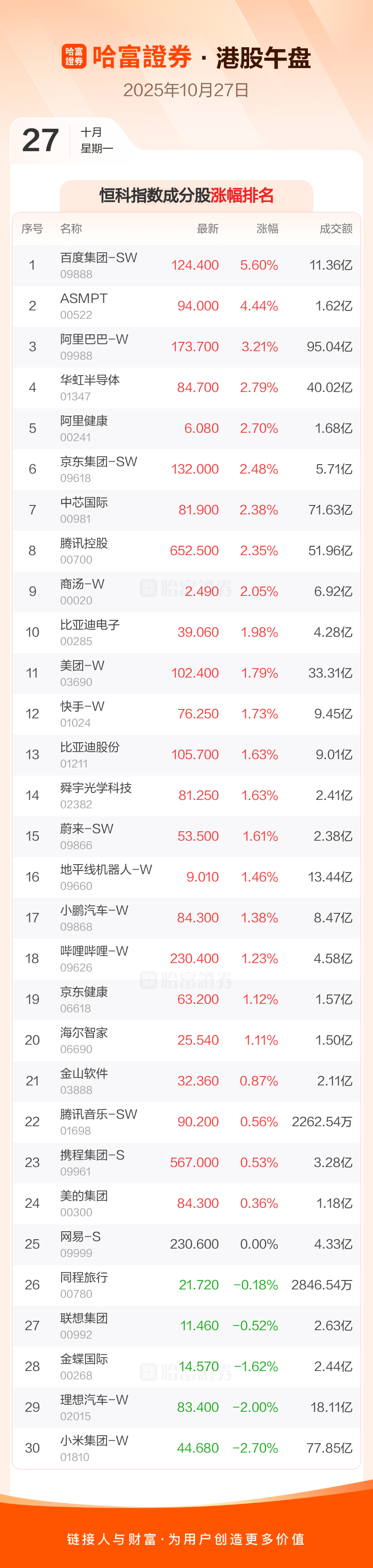 港股午评:恒生指数涨1.02% 恒生科技指数涨1.48%