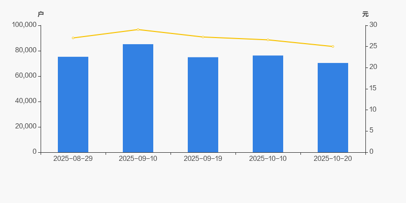 2025年8月29日至今,公司股东户数有所下降,区间跌幅为6.49%。2025年8月29日至2025年10月20日区间股价下降7.47%。