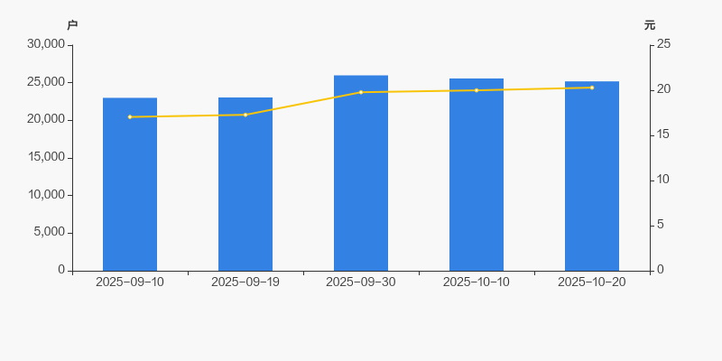 2025年9月10日至今,公司股东户数有所增长,区间涨幅为9.53%。2025年9月10日至2025年10月20日区间股价上涨19.07%。
