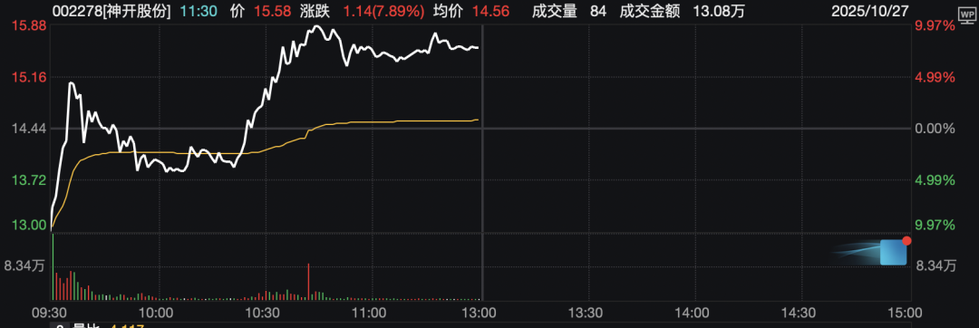 大幅波动的个股方面,神开股份(002278)开盘跌停,盘中股价拉升,一度触及涨停,上演“地天板”,截至发稿,涨幅在7%以上,成交额超过20亿元。