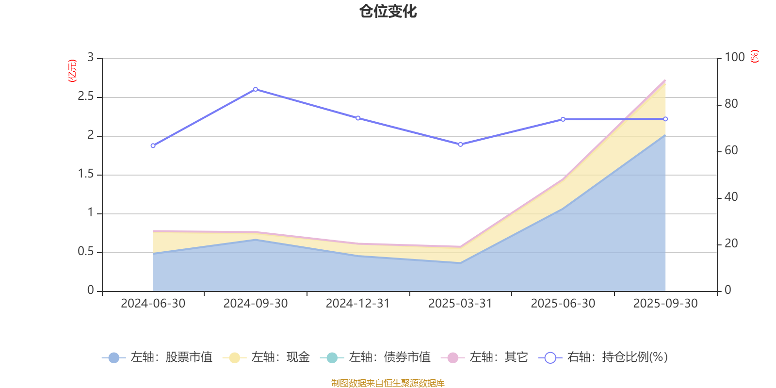 据定期报告数据统计,成立以来平均股票仓位为72.33%,同类平均为83.5%。2024年三季度末基金达到86.65%的最高仓位,2024年上半年末最低,为62.43%。