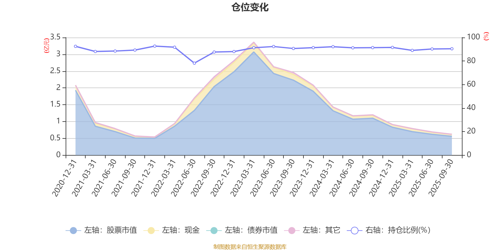 据定期报告数据统计,近三年平均股票仓位为90.82%,同类平均为86.81%。2021年末基金达到92.68%的最高仓位,2022年上半年末最低,为78.19%。